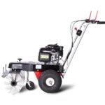 Die Kehrbürsten werden mittig angetrieben – hierdurch wird ein wandschlüssiges Kehren, auch in Verbindung mit einem stabilen Kunststoff Kehrgutbehälter, ermöglicht. Der Bürstendruck ist dabei stufenlos einstellbar und die Bürsten lassen sich in verschiedene Rastpositionen schwenken. Den Lenker können Sie bequem Ihrer Körpergröße anpassen.