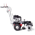 Die Kehrbürsten werden mittig angetrieben – hierdurch wird ein wandschlüssiges Kehren, auch in Verbindung mit einem stabilen Kunststoff Kehrgutbehälter, ermöglicht. Der Bürstendruck ist dabei stufenlos einstellbar und die Bürsten lassen sich in verschiedene Rastpositionen schwenken. Den Lenker können Sie bequem Ihrer Körpergröße anpassen.