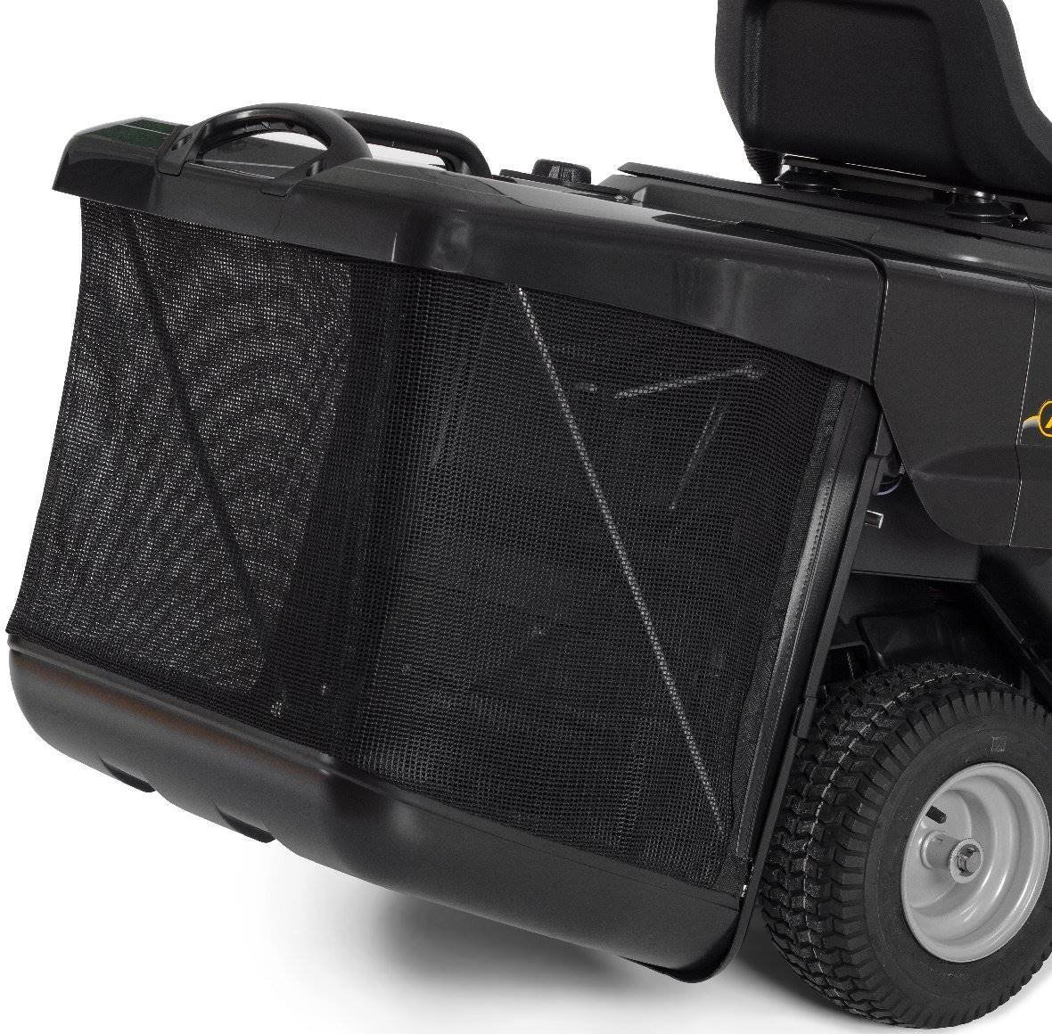 Die Schnitthöhe ist manuell 6-fach von 30 – 80mm verstellbar und das Auffangvolumen des Textilfangkorbs beträgt 150 Liter.