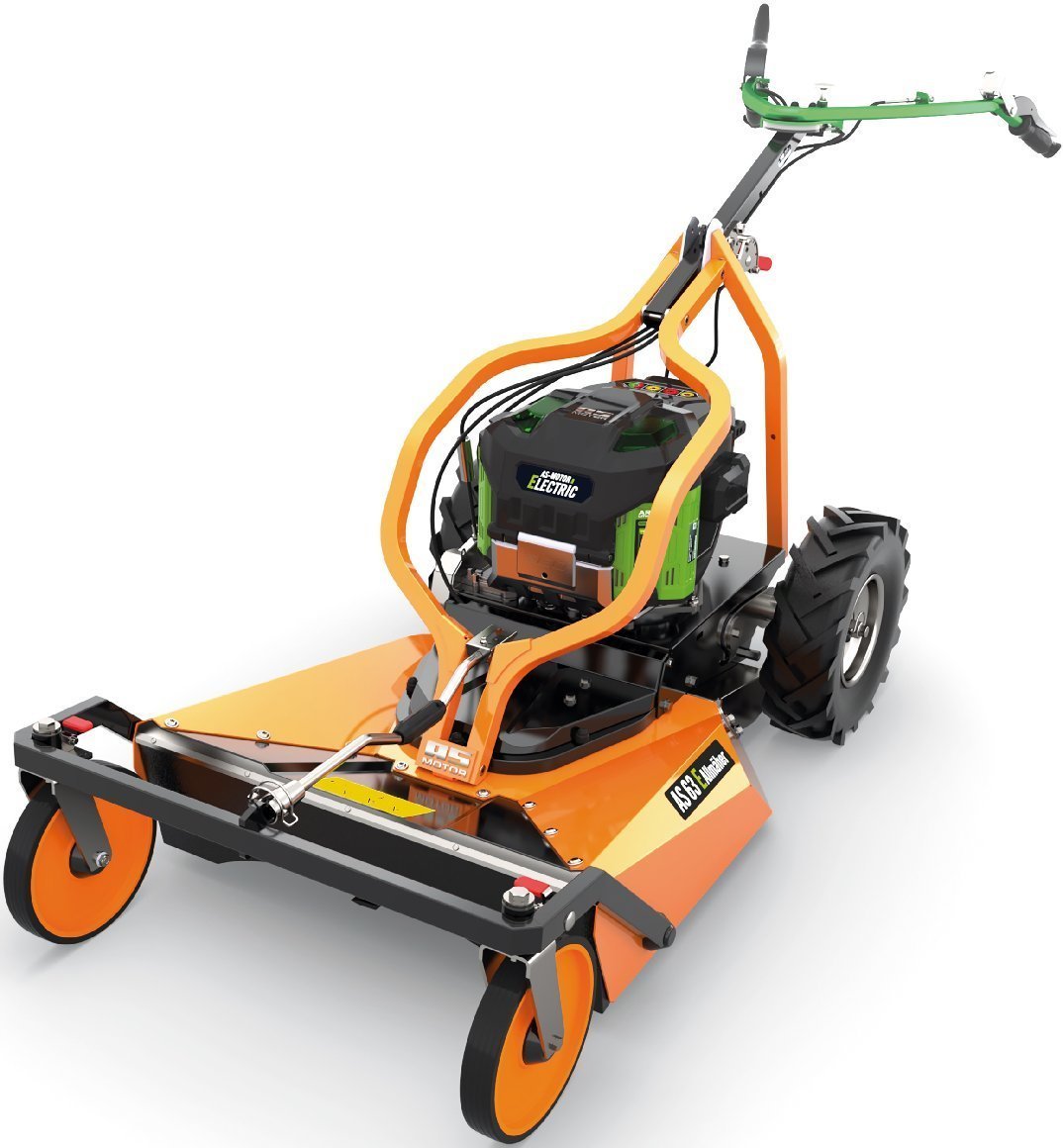 Der AS 63 ist der Hangmäher par excellence. Mit seiner Luftbereifung und der Differentialsperre erklimmt er mit Leichtigkeit Steigungen. Über die Motorbremse hält er bergab die gewählte Geschwindigkeit, ohne schneller zu werden. Ausgerüstet mit einem Kreuzmessersystem schneidet und zerkleinert der AS 63 E-Allmäher problemlos hohes Gras mit leichtem Gestrüpp bis zu 100 cm hoch.