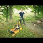 Das Kreuzmessersystem schneidet und zerkleinert zuverlässig das Schnittgut bei Schnitthöhen von 50-100 mm. Diese werden achsweise eingestellt, vorne stufenlos und hinten in fünf Stufen. Das geschlossene Mulchmähdeck mit Heckauswurf verhindert ungewolltes Auswerfen von Schnittgut zur Seite. Die Fahrgeschwindigkeit kann stufenlos während der Fahrt von 1,9 und 4 km/h variiert werden. Die 30 cm großen Antriebsräder sorgen für gute Traktion. Für Arbeit in leichten Hanglagen lassen sich die Vorderräder arretieren, um ein Abtriften der Maschine zu verhindern.