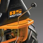 Die Parkbremse mit Fahrantrieb, die Differenzialsperre und die Messerkupplung werden beim AS 65 4T B&S mit nur drei Bedienungshebeln betätigt. Beim Loslassen des Fahrhebels springt sofort die Parkbremse ein und stoppt die Maschine zuverlässig, auch am steilen Hang. Besonders sinnvoll ist die permanent gesperrte Differenzialsperre, die nur zum Manövrieren oder zum Wenden kurz durch einen Handhebel während der Fahrt entsperrt wird. Der Führungsholm ist seitlich und in der Höhe verstellbar. Die Schnitthöhe kann stufenlos am Führungsrad im Bereich von 50 – 100 mm angepasst werden. Die Antriebsräder mit Ackerstollenprofil bieten sehr gute Traktion am Hang und guten Seitenhalt bei Schräglage.