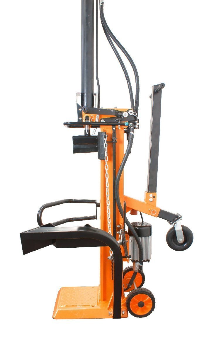 Durch das Fahrwerk und den Transportgriff ist der Brennholzspalter trotz der Größe und des Gewichtes einfach umzusetzen.