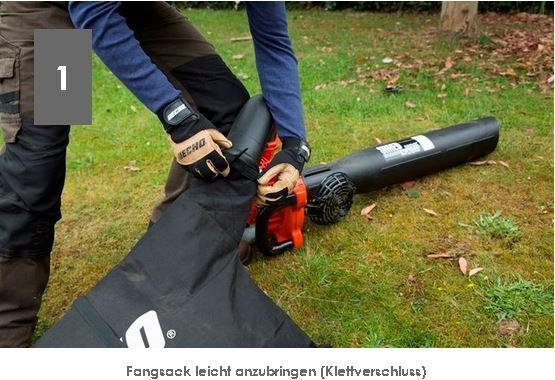 Wenn Besen kapitulieren, schlägt die Stunde des ECHO-Saughäckslers. Durch die spezielle Leitplatte und ein eigens entwickeltes Lüfterrad packt er ordentlich zu und saugt Gras, Grünschnitt, Abfall und natürlich Laub in Windeseile kompostfertig gehäckselt in den 68 Liter fassenden Fangsack. Das Gerät ist für Rechts- und Linkshänder geeignet. Der Fangsack ist im Gegensatz zu Produkten anderer Hersteller, auf der langen Seite zu öffnen. Das Entleeren fällt so um ein vielfaches einfacher. Der ES-255ES ist zugleich ein Kombi-Gerät und kann mit wenigen Handgriffen zum Laubbläser umgebaut werden (benötigtes Zubehör ist im Lieferumfang enthalten).