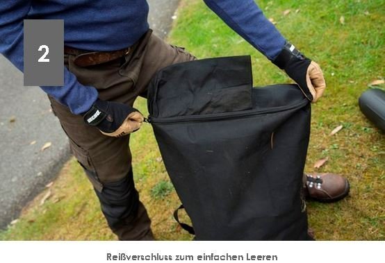 der Fangsack ist über den weit zu öffnenden Reißverschluß leicht und schnell zu entleeren