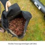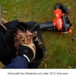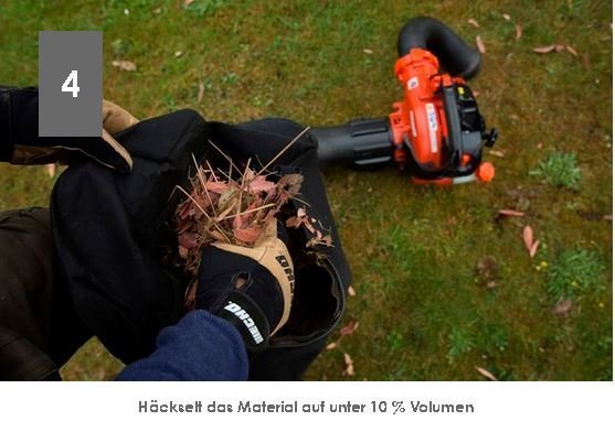 das integrierte Häckselwerk zerkleinert das Laub auf etwa ein Zwölftel des ursprünglichen Volumens