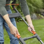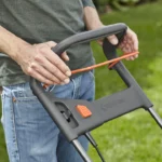Dank des klappbaren Führungsholm kann der Rasenmäher platzsparend eingelagert oder transportiert werden.