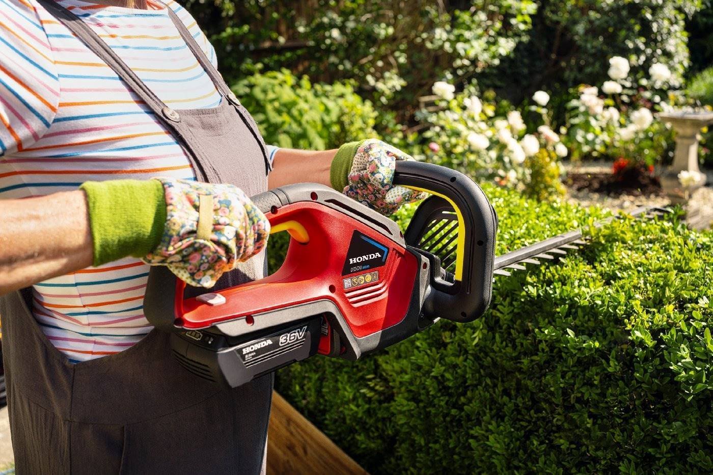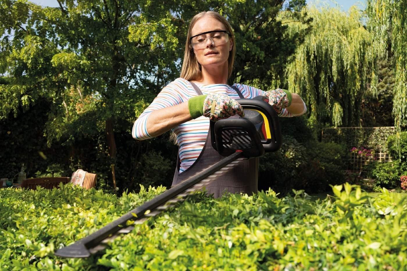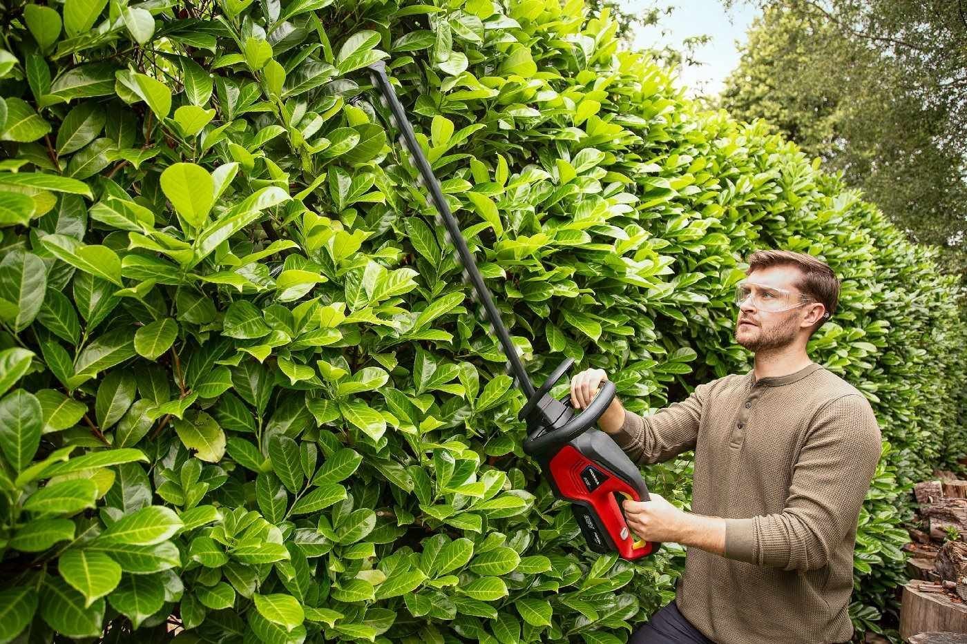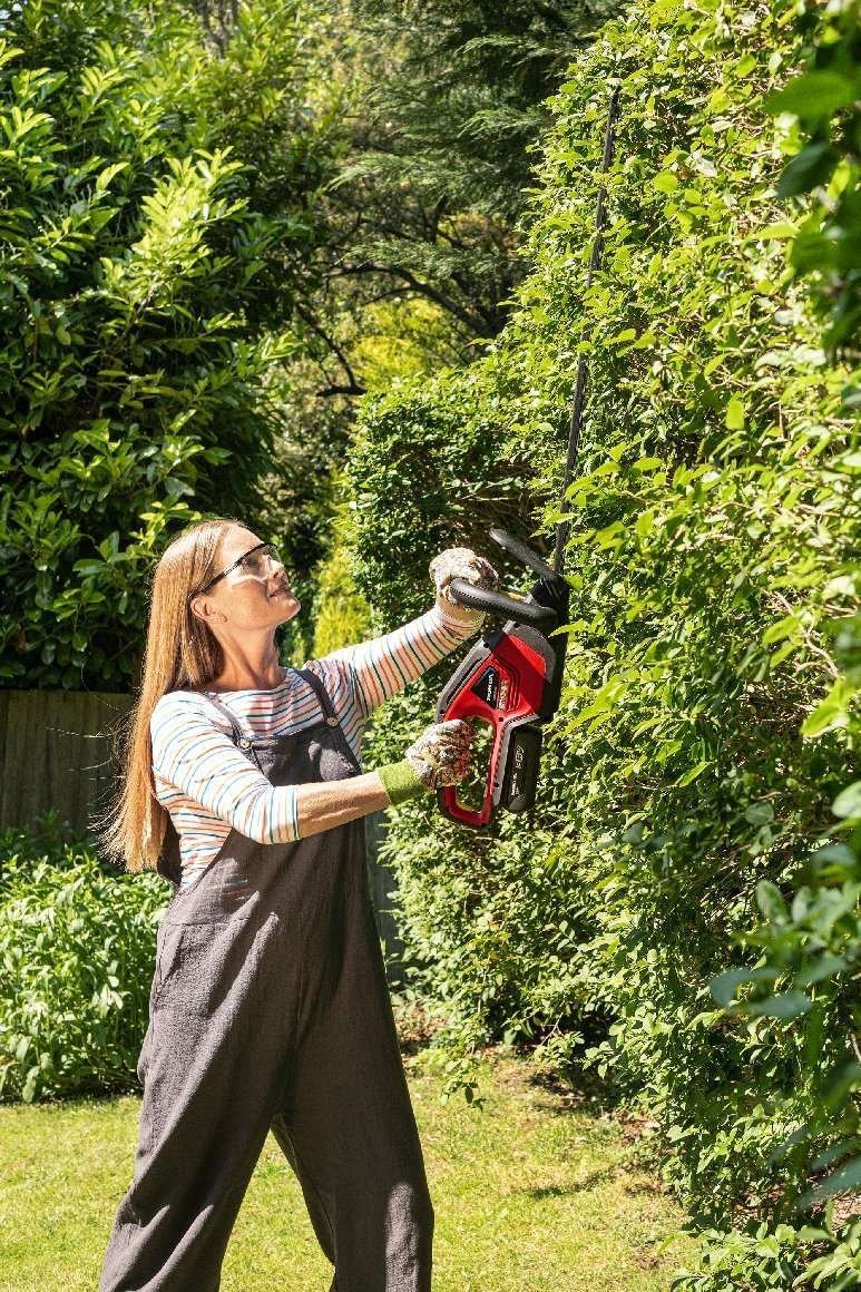 Nach Durchschneiden einer Blockade fährt die Heckenschere im normalen Modus eigenständig fort. Kann die Blockade nicht durchschnitten werden, stoppt der Messerbalken automatisch in offener Position. Blockade kann so einfach manuell entfernt werden.