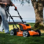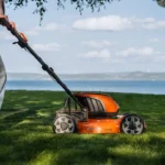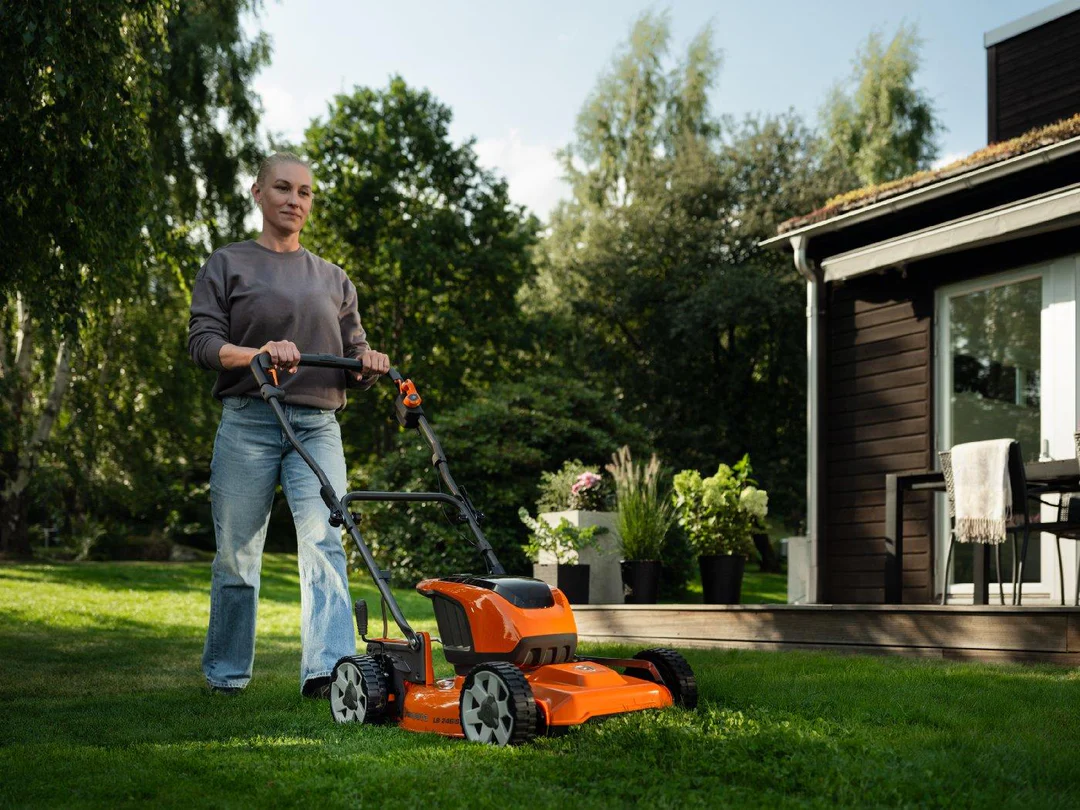 Leichter Transport des Rasenmähers, dank integriertem Transportgriff.