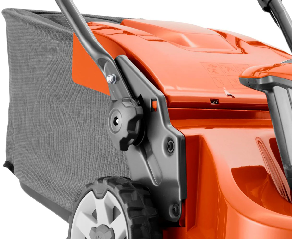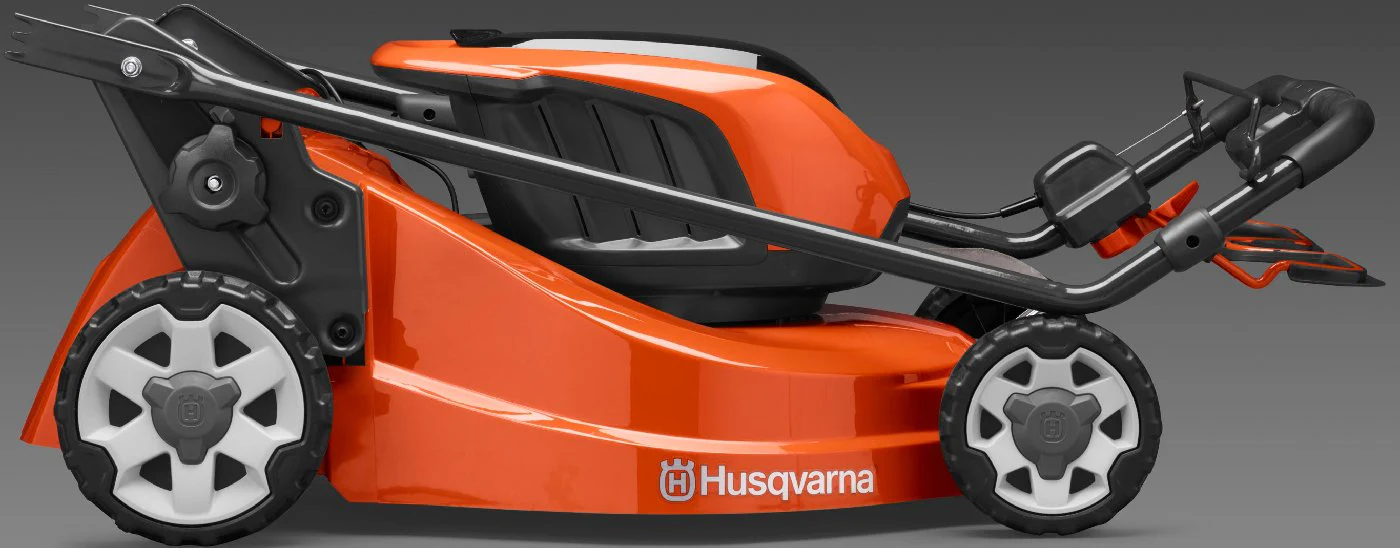 Dank des klappbaren Führungsholm kann der Rasenmäher platzsparend eingelagert oder transportiert werden.