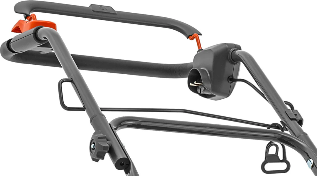 Dank des klappbaren Führungsholm kann der Rasenmäher platzsparend eingelagert oder transportiert werden.