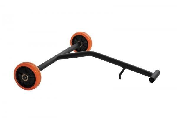 das Transportrad ermöglicht das Transportieren der Rüttelplatte durch eine Person