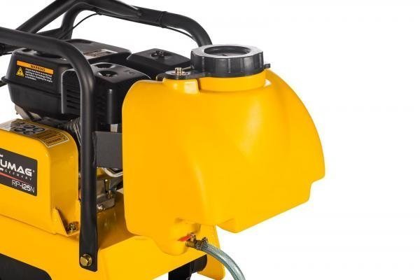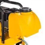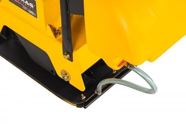– Die Wasserberieselung ist unentbehrlich beim Verdichten von sehr staubigen Untergründen, sowie bei allen Asphalt- und Teerarbeiten! Durch ein Düsenrohr wird das Wasser vor, bzw. unter die Platte verteilt. Die Wassermenge ist regulierbar und der Tank abnehmbar.