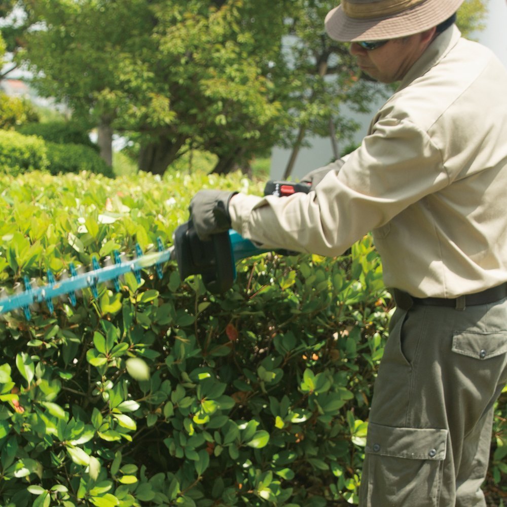 Akku-Heckenschere für Einsätze, die flexible Handhabung eines kabelfreien Gerätes als auch reduzierte Betriebsgeräusche erfordern. Griff mit 5 Positionen: Arretierungen bei 0° sowie 45° und 90° links und rechts für angenehmes Arbeiten in jeder Haltung. Gut ausbalanciert durch die Platzierung des Akkus am hinteren Griffende.