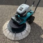 Radialbesen entfernen schnell Schmutz, Laub und Schnee von Flächen, ohne dass lange Fasern und Halme sich in der Bürste verfangen können. Ein Radantrieb ist aufgrund der Bürstenneigung nicht erforderlich. Die Bürstenbewegung erleichtert das Schieben der Akku-Kehrmaschine.