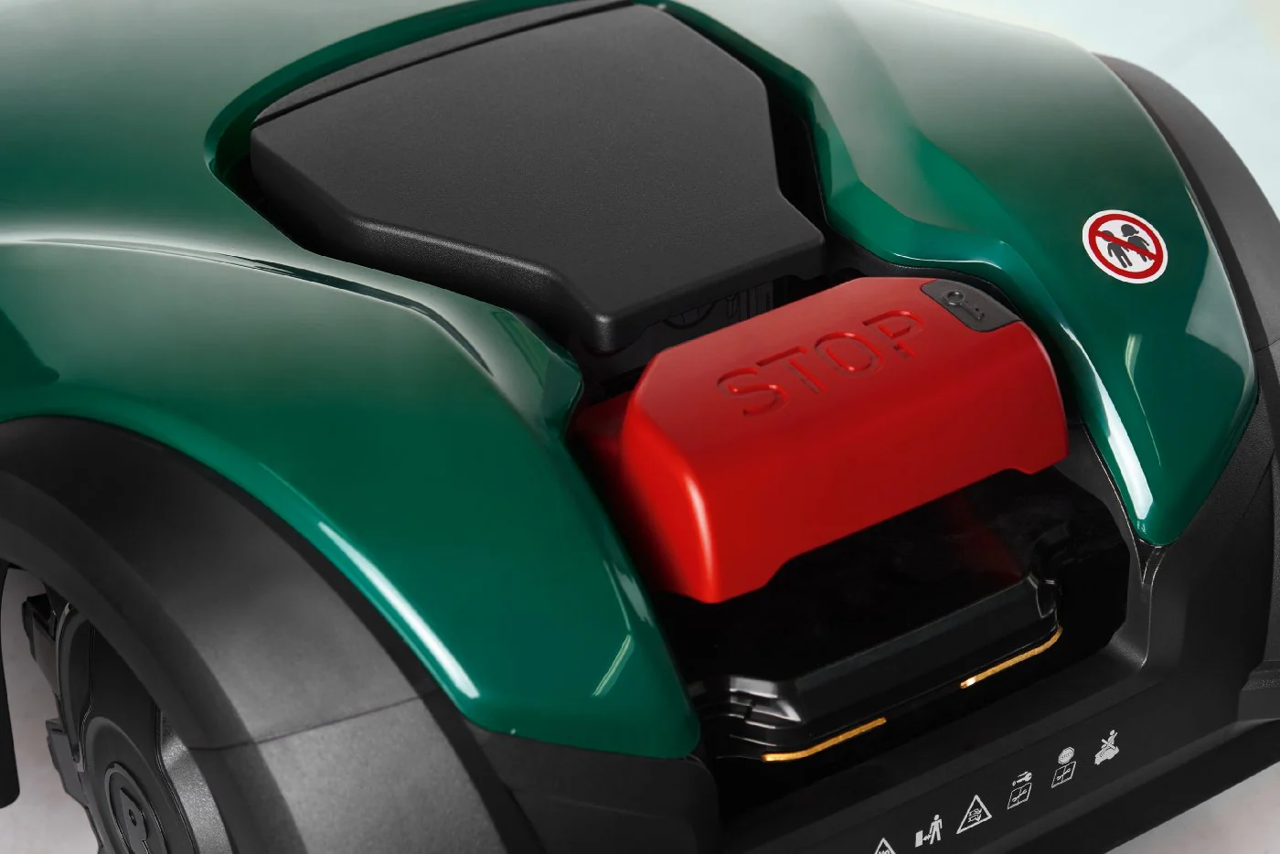hohe Sicherheit, da durch einen Hebesensor das Mähmesser gestoppt wird, sobald der Mähroboter angehoben wird.