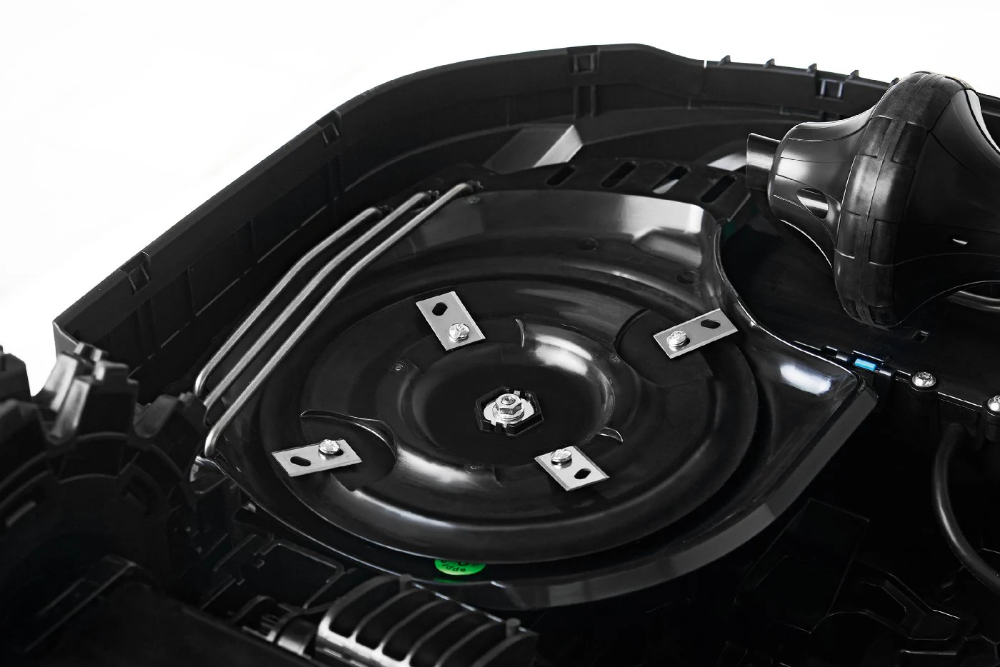 Das große Messer macht diesen Mähroboter besonders geeignet für Gärten mit Baumbestand.