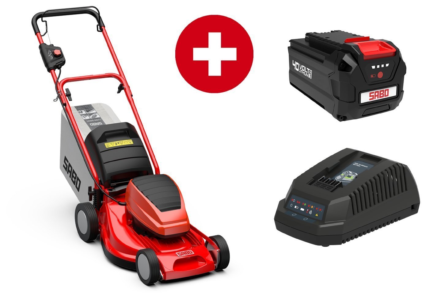 Mit einer Schnittbreite von 40 Zentimetern wird der SABO 40-ACCU Rasenflächen bis zu 400 Quadratmeter gerecht. Der 19,5 Kilogramm leichte Akku-Mäher ist wendig und leicht zu manövrieren, gleichzeitig zeichnet er sich durch eine hohe Mäh- und Fangleistung aus. Die Schnitthöhe ist einfach regulierbar, der 44 Liter fassende Fangsack bietet ausreichend Platz für einen langen Mäheinsatz.