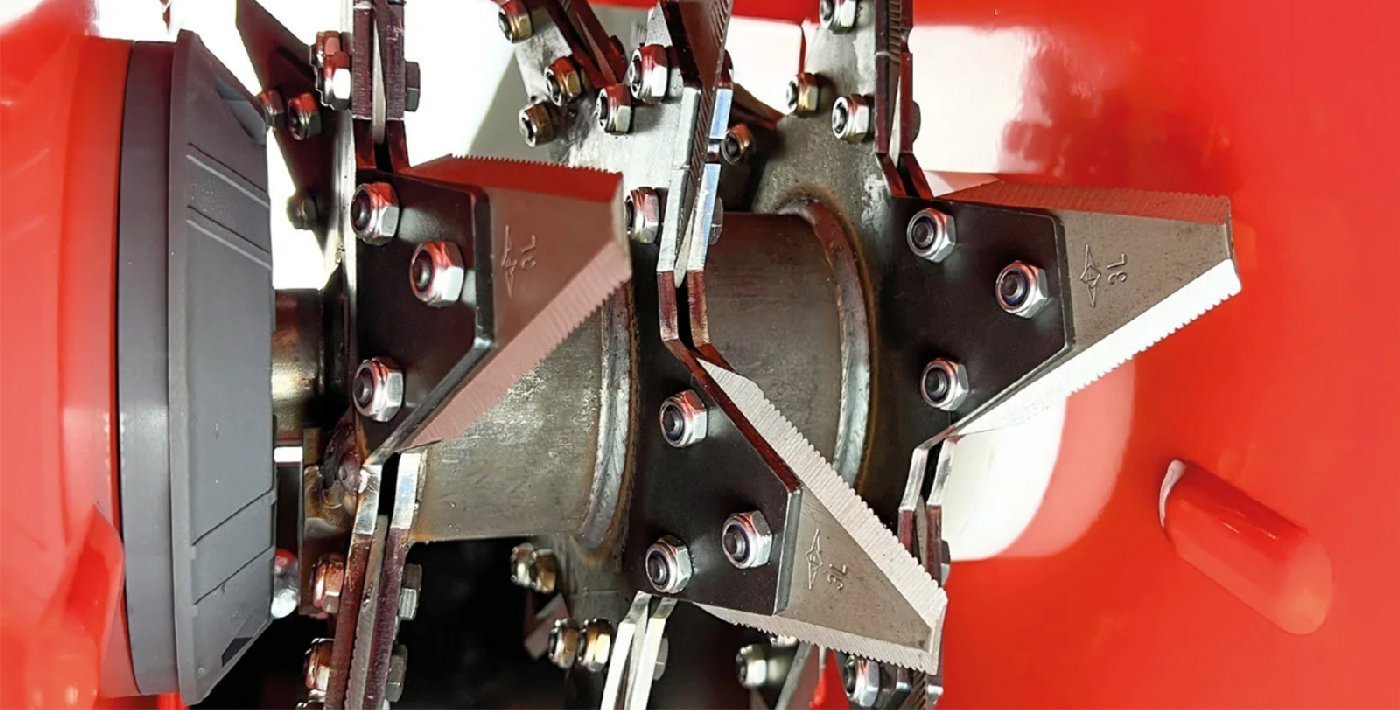 Beim ELIET Axtprrinzip erfolgt die Zerkleinerung in Faserrichtugn. Die Belastung der Messer wird reduziert, was zu einer längeren Lebensdauer der Maschine und geringeren Wartungskosten führt.