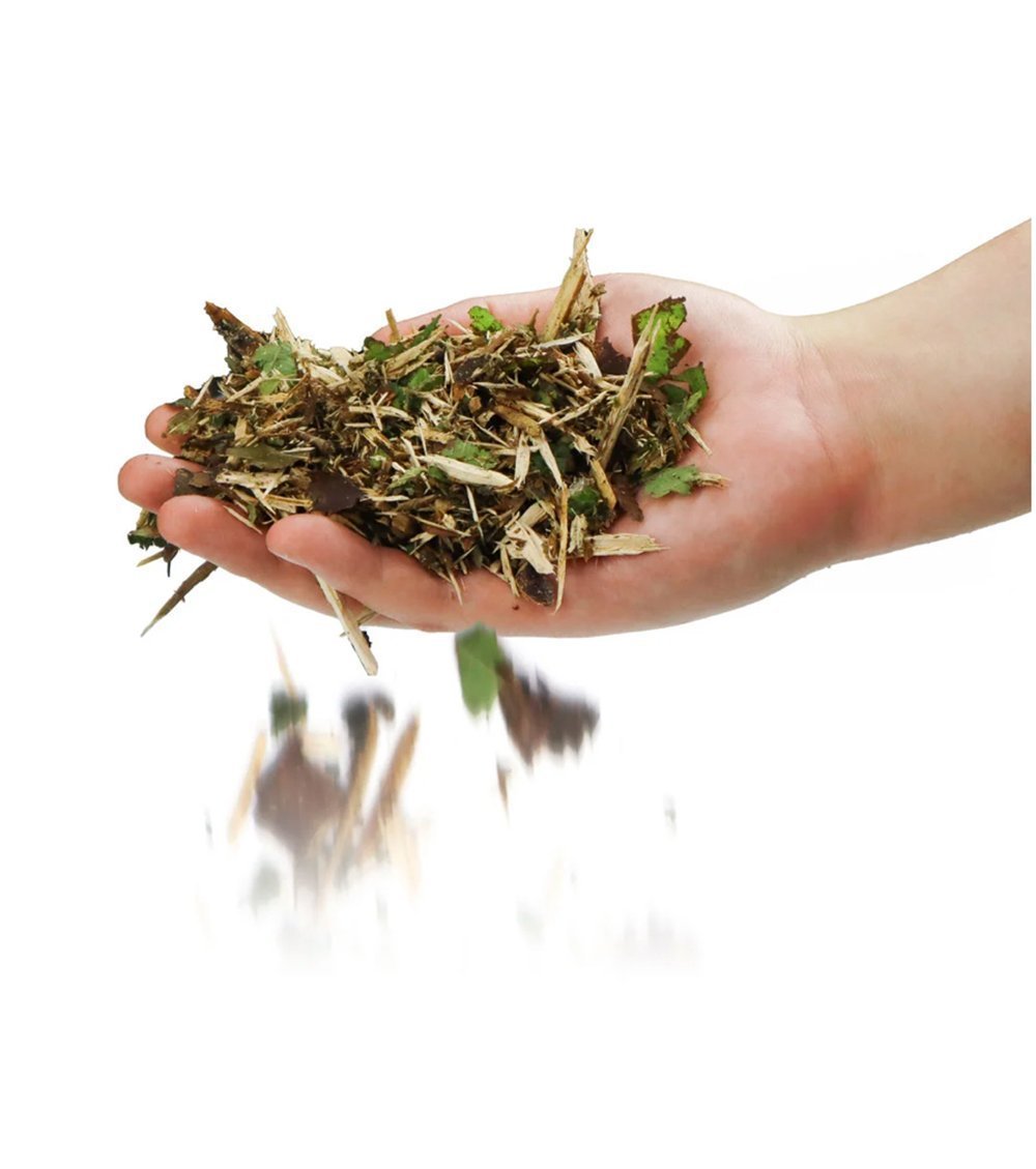 Das ELIET Axprinzip Häckselsystem zerkleinert die natürliche Faserstruktur des Holzes besonders effizient. So entsteht wertvoller Mulch oder Kompostmaterial zur Weiterverwendung in Ihrem Garten.