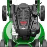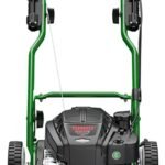 Leichter Transport des Rasenmähers, dank integriertem Transportgriff.