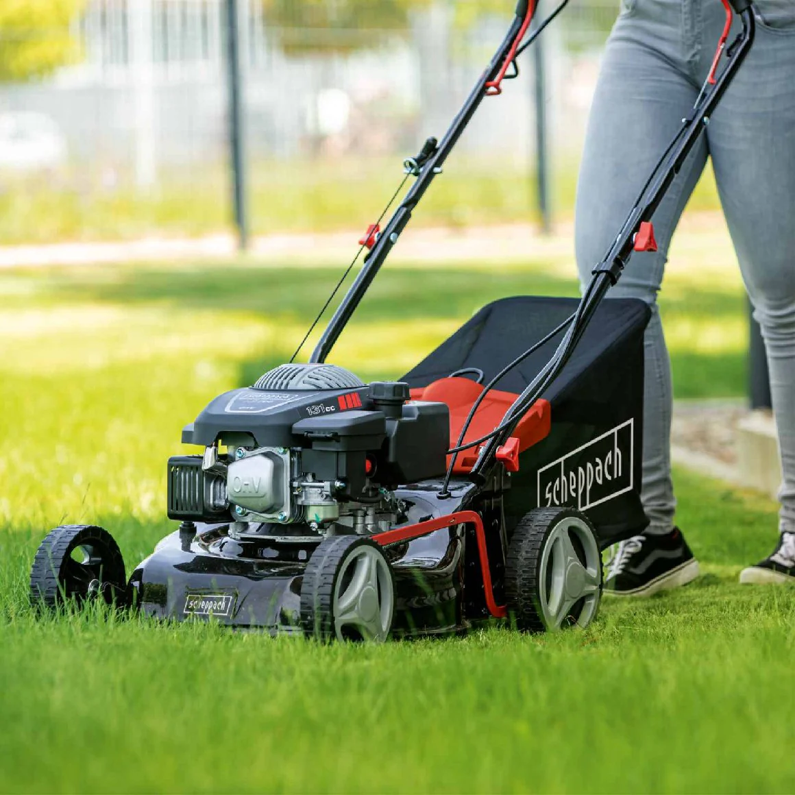 Dank des klappbaren Führungsholm kann der Rasenmäher platzsparend eingelagert oder transportiert werden.