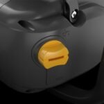 Die integrierte Mutter an der Seite der Kettenabdeckung erleichtert das Spannen der Kette. Die Kettengeschwindigkeiten wird mit der Softkey-Tastatur gewechselt: 16 m/s für energiesparendes Sägen oder 20 m/s für schnelleres, durchgängiges Sägen. Ein kurzer Blick auf die LEDs des Bedienfeld bietet auch bei starker Sonneneinstrahlung deutlich wichtige Informationen wie Kettengeschwindigkeit, Akkustatus und aktivierte Bremsen. Ein Blick auf das Schauglas am Ölbehälter informiert über den Füllstand des Kettenschmieröls.