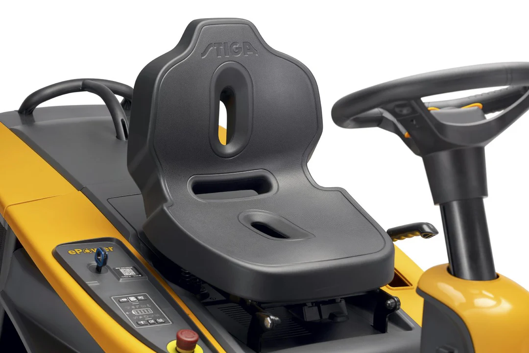 Komfortabel und leise: Der ergonomische Sitz und die leise Akkutechnologie ermöglichen eine entspannte und angenehme Mäherfahrung.