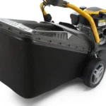 Leichter Transport des Rasenmähers, dank integriertem Transportgriff.