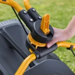 Leichter Transport des Rasenmähers, dank integriertem Transportgriff.