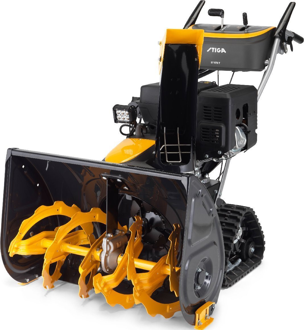 Zweistufiger Schneetransport: Der Schnee wird über die Frässchnecke auf die dahinter liegende Schneeschleuder transportiert und von dieser dann durch den Auswurfkamin an die gewünschte Stelle ausgeworfen.