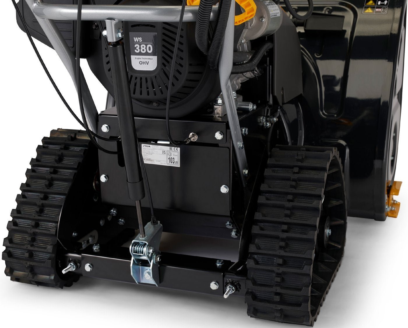 Das Raupenfahrwerk bietet hohe Traktion, geringen spezifischen Bodendruck, optimale Geländegängigkeit und sehr gute Spurtreue sowie Geradeauslauf