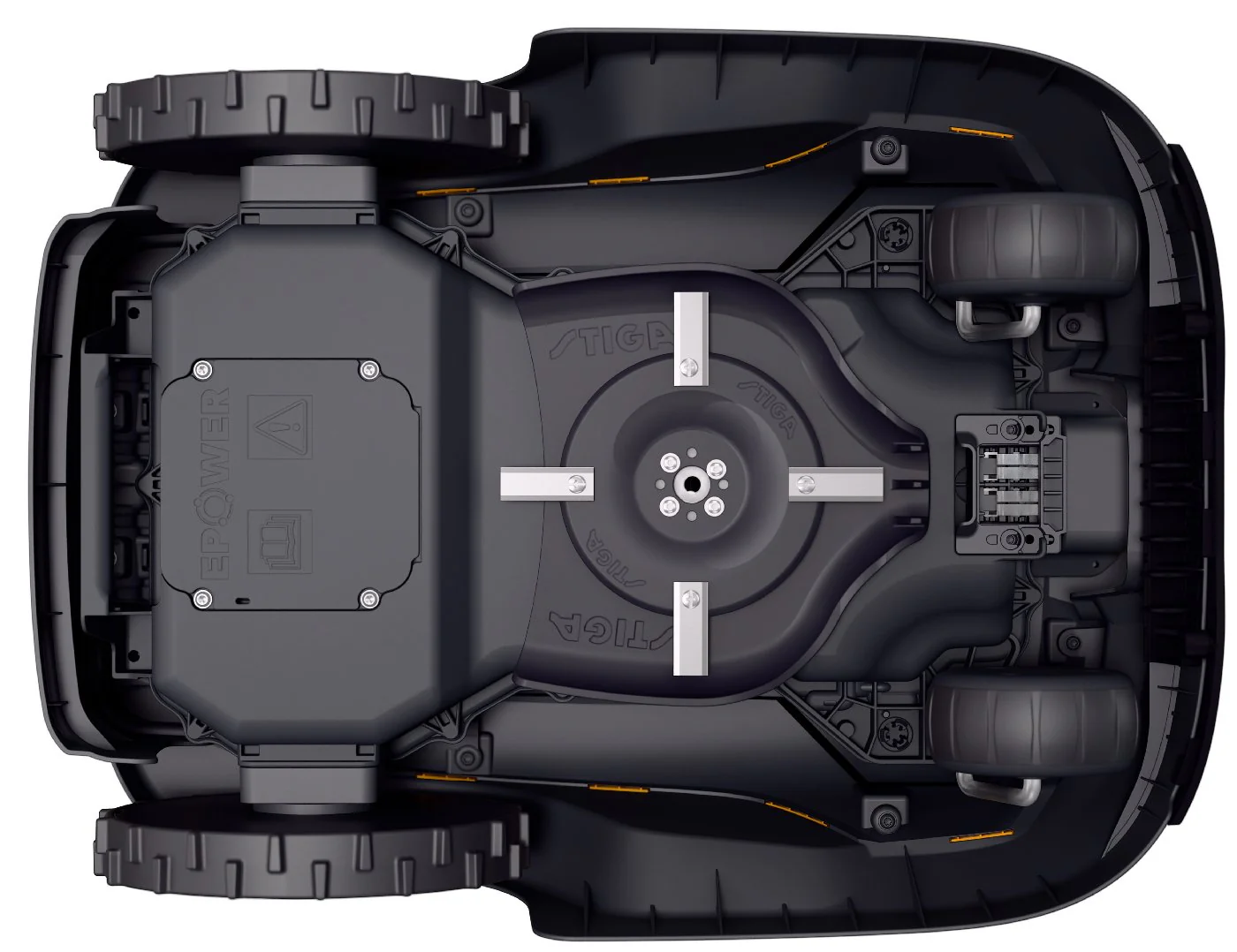 hohe Sicherheit, da durch einen Hebesensor das Mähmesser gestoppt wird, sobald der Mähroboter angehoben wird.