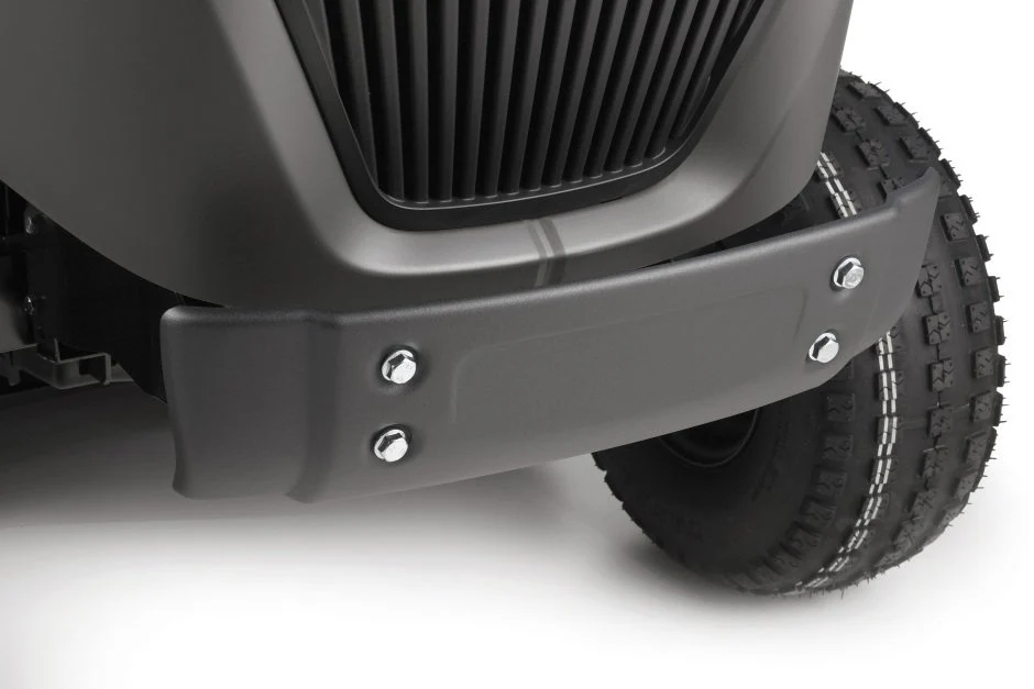 Die serienmäßig im Lieferumfang enthaltene robuste Stoßstange schützt verlässlich die Motorhaube des Rasentraktors
