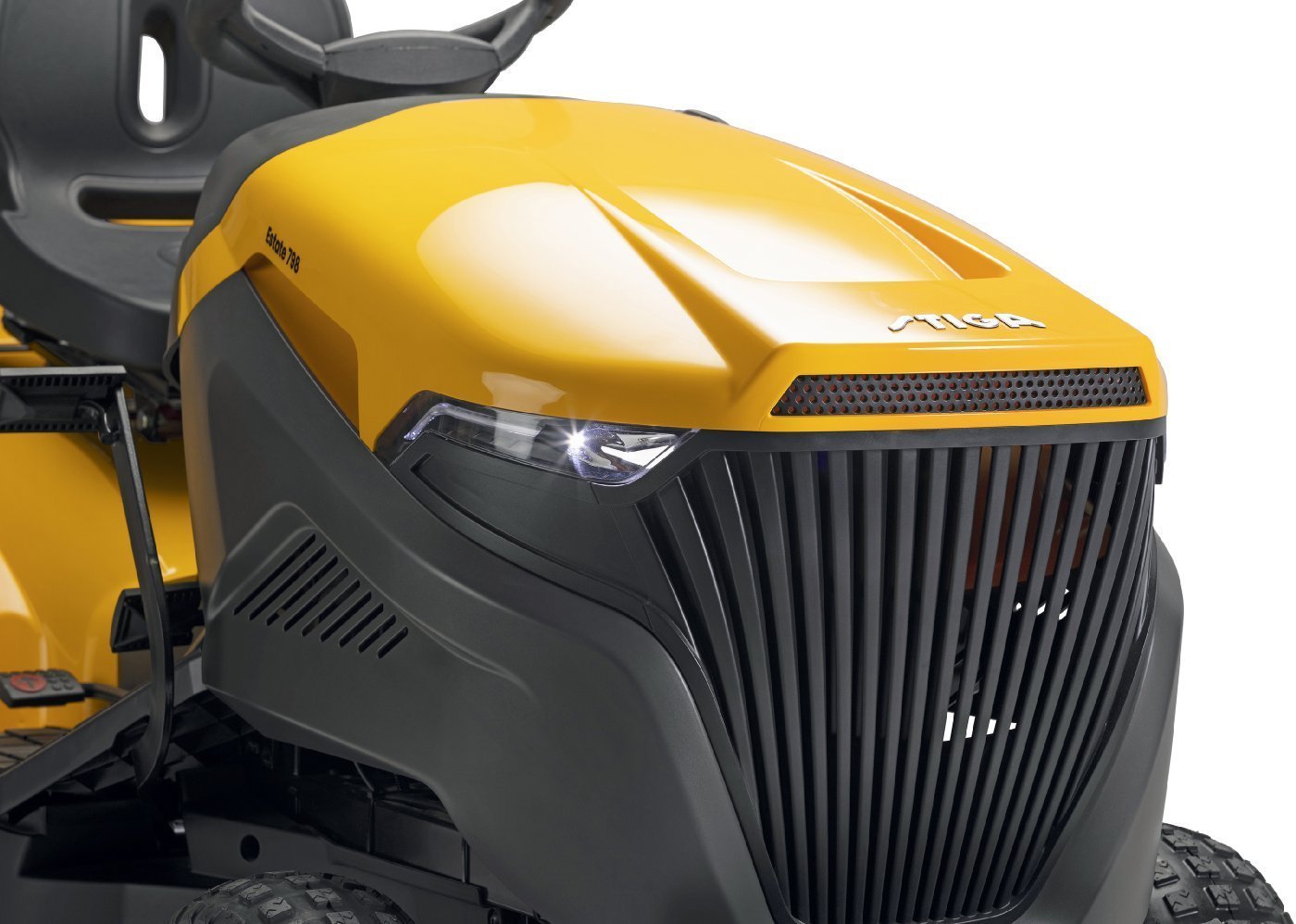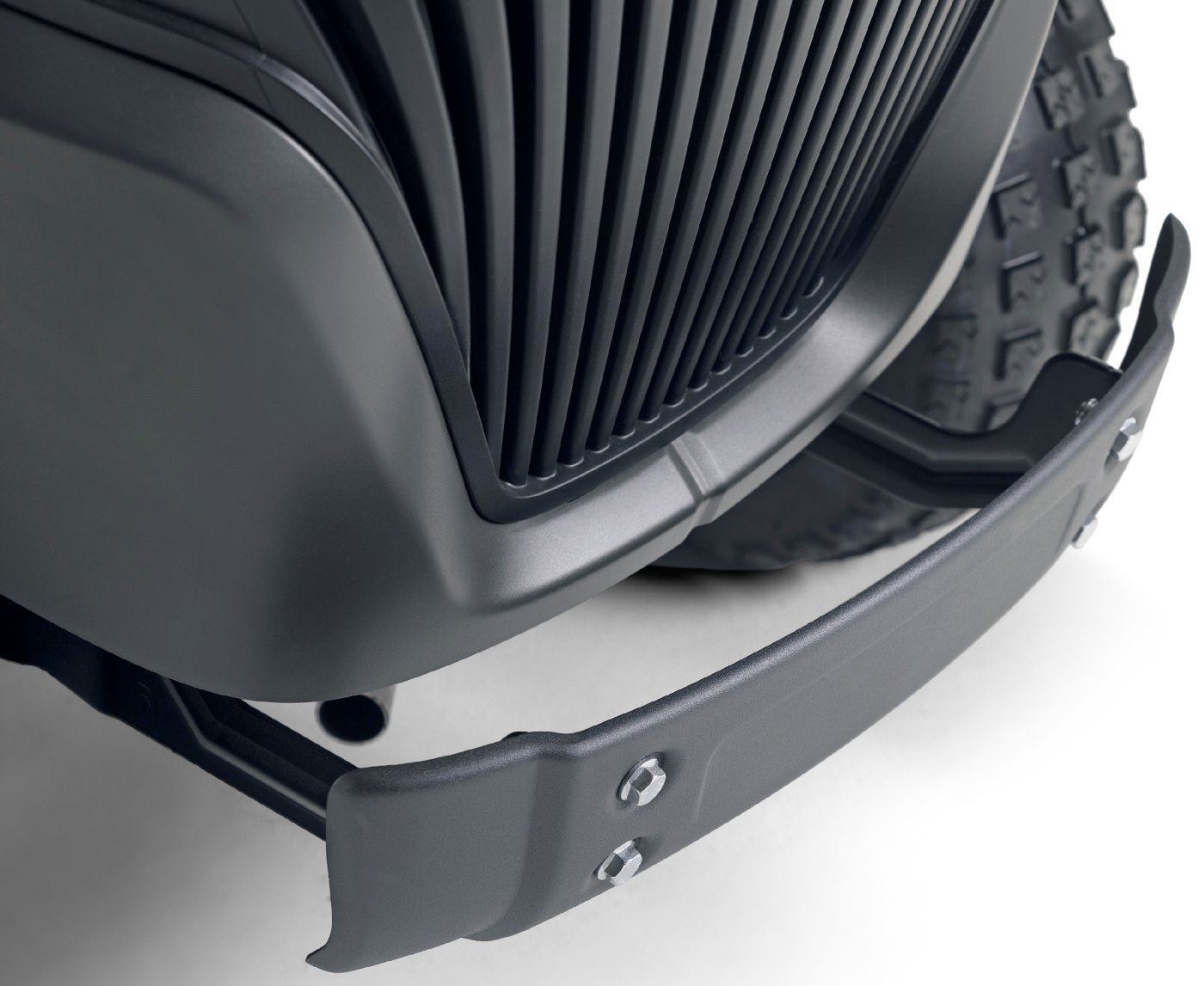 Die serienmäßig im Lieferumfang enthaltene robuste Stoßstange schützt verlässlich die Motorhaube des Rasentraktors