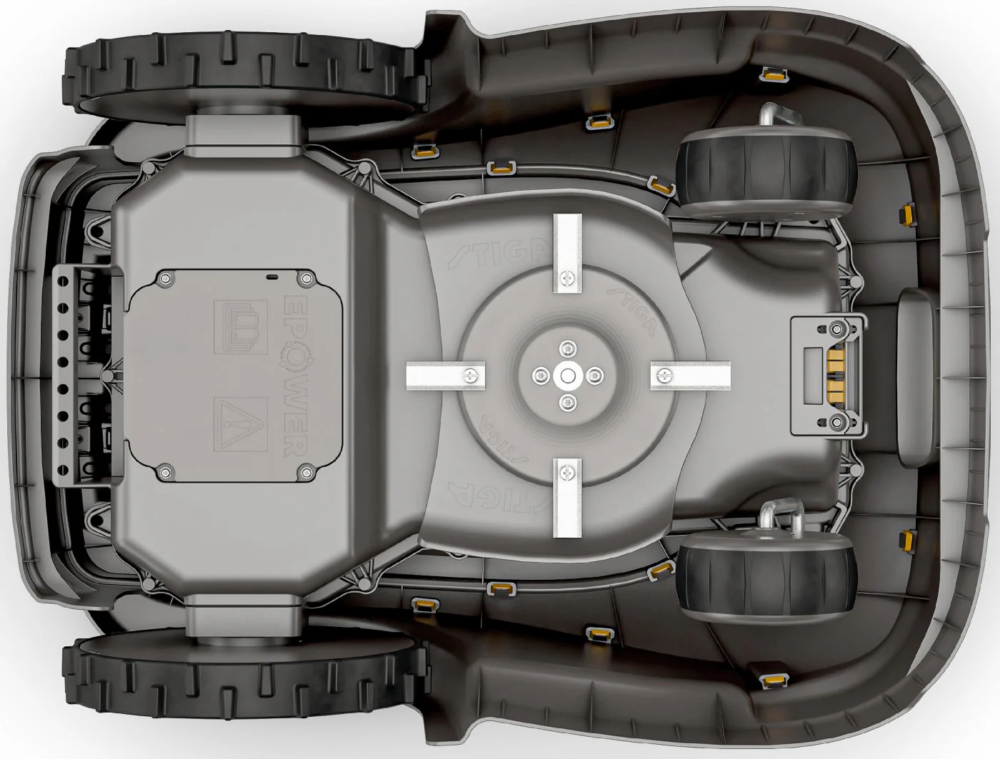 hohe Sicherheit, da durch einen Hebesensor das Mähmesser gestoppt wird, sobald der Mähroboter angehoben wird.