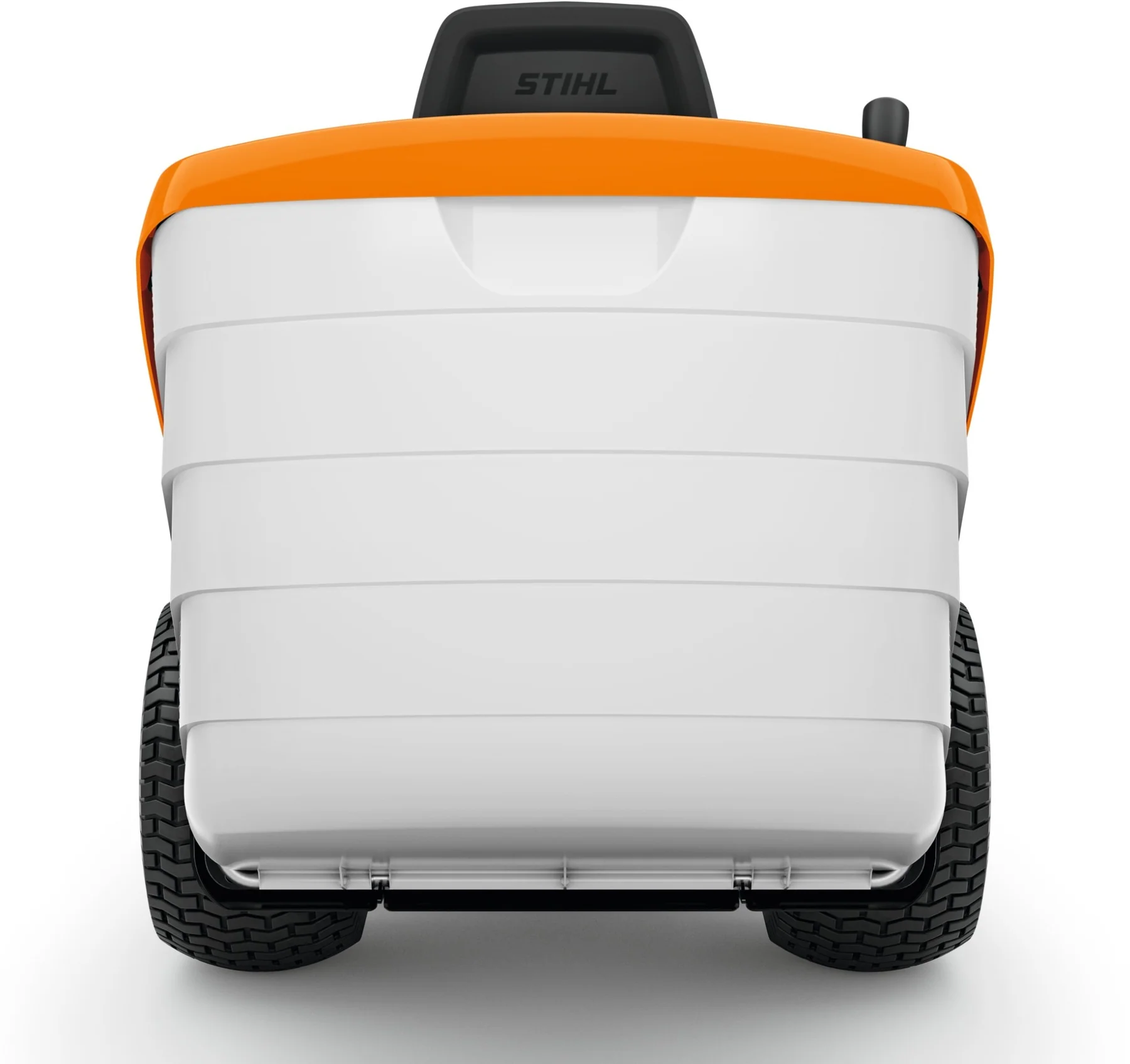 Die großen und breiten Hinterräder verbessern die Bodenhaftung und verringern das Risiko empfindliche Flächen zu beschädigen.