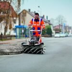 Der Bürstendruck lässt sich variabel einstellen. Das Kehrergebnis lässt sich so in Abhängigkeit von der Bürstenabnutzung und dem Untergrund optimieren.
